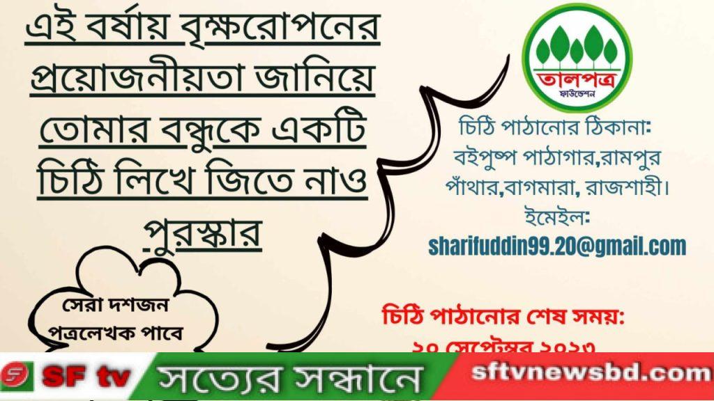 তালপত্র ফাউন্ডেশনের উদ্যোগে চলমান স্কুল ক্যাম্পেইন ও বৃক্ষরোপনের প্রয়োজনীয়তা জানিয়ে বন্ধুর কাছে পত্রলিখন প্রতিযোগিতা।