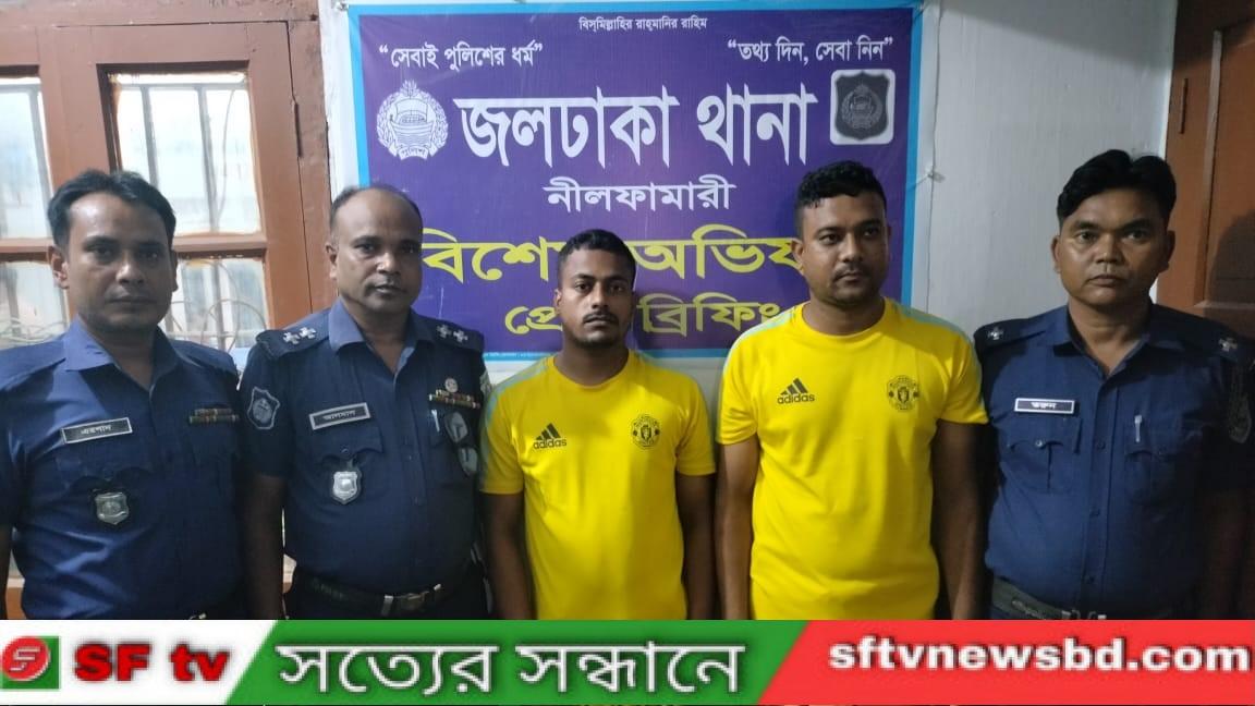 নওগাঁ জেলার নিয়ামতপুর থানার হাজিনগর ইউনিয়নের ১নং ওয়ার্ডের স্থায়ী বাসিন্দা মোস্তফা কামালের ছেলে সেন্টু রহমান(২৩)ও একই জেলার পরশা থানার ঘাটনগর ইউনিয়নের বড়গ্রাম এলাকার সাইদুল রহমানের ছেলে সারোয়ার হোসেন(২৫)।জলঢাকা থানার এএসআই হারুন জানান গ্রেফতারকৃত দুই প্রতারকের বিরুদ্ধে জলঢাকা থানায় মামলা হয়েছে -যাহার নং- ০২/১৮৪, ধারা- পর্নোগ্রাফি নিয়ন্ত্রণ আইন ২০১২ এর ৮(১)/(২)/(৩) ।