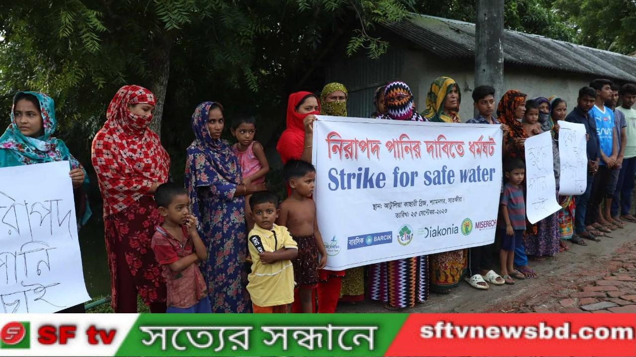 শ্যামনগরে নিরাপদ খাবার পানির দাবীতে বিক্ষোভ