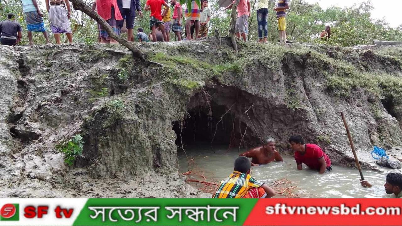 সাতক্ষীরা শ্যামনগর উপজেলায় মৎস্যঘেরে লবণ পানি তোলার লক্ষ্যে বেড়িবাঁধে স্থাপিত অবৈধ নাইন্টি পাইপ ও বাক্সকলগুলো অপসারণ না করায় মারাত্মক ঝুঁকিপূর্ণ হয়ে পড়েছে উপকূলের রক্ষা বাঁধ। শনিবার (৩০ সেপ্টেম্বর) দুপুরে উপজেলার কৈখালী ইউনিয়নে একটি বাক্সকল ভেঙে নদীর পানি প্রবেশ করেছে লোকালয়ে। প্লাবিত হয়েছে বিস্তীর্ণ এলাকা। ওই এলাকার নূর ইসলামের মৎস্যঘেরের বাক্সকল ভেঙে ১৫ ফুট এলাকাজুড়ে বেড়িবাঁধের তলার মাটি নদীগর্ভে বিলীন হয়ে গেছে।