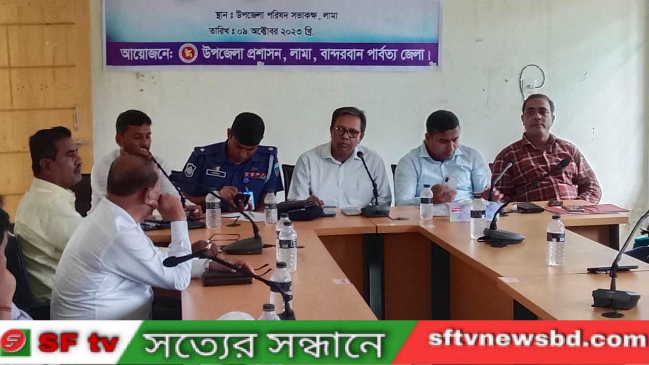 লামায় দুর্গাপূজা উদযাপন উপলক্ষে উপজেলা প্রশাসনের প্রস্তুতিমূলক সভা অনুষ্ঠিত হয়েছে। সোমবার (৯ সেপ্টেম্বর) সকাল সাড়ে ১০ টায় উপজেলা পরিষদ হলরুমে অনুষ্ঠানে প্রধান অতিথি ছিলেন লামা উপজেলা চেয়ারম্যান মোঃ মোস্তফা জামাল।
