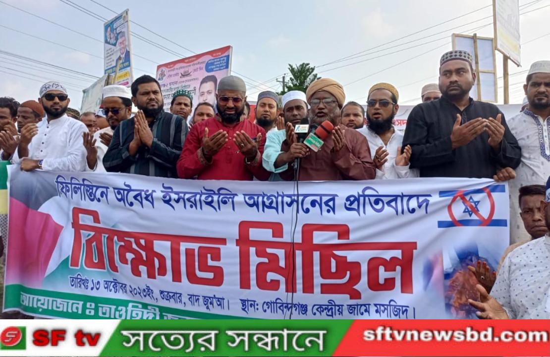 গোবিন্দগঞ্জে ফিলিস্তিনে অবৈধ ইসরাইলী আগ্রাসনের প্রতিবাদে বিক্ষোভ মিছিল
