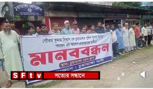 পুলিশ সুপার গৌতম কুমার বিশ্বাসের চুয়াডাঙ্গায় পদায়ন প্রত্যাহারের দাবীতে মানববন্ধন
