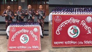 শিবগঞ্জ সীমান্তে বিজিবির কঠোর অভিযান: ১৮৬ বোতল নেশাজাতীয় সিরাপ জব্দ