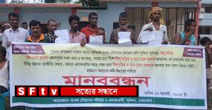 পূর্বধলায় রেলওয়ে জমি উদ্ধারের দাবিতে মানববন্ধন