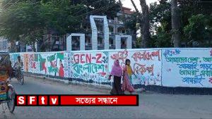 সিরাজগঞ্জের শাহজাদপুরে বৈষম্য ছাত্র-ছাত্রীদের উদ্যোগ বিভিন্ন দেয়ালে আলপনা অংকন