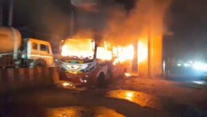 আশুলিয়ায় লাব্বাইক পরিবহনের বাসে আগুন